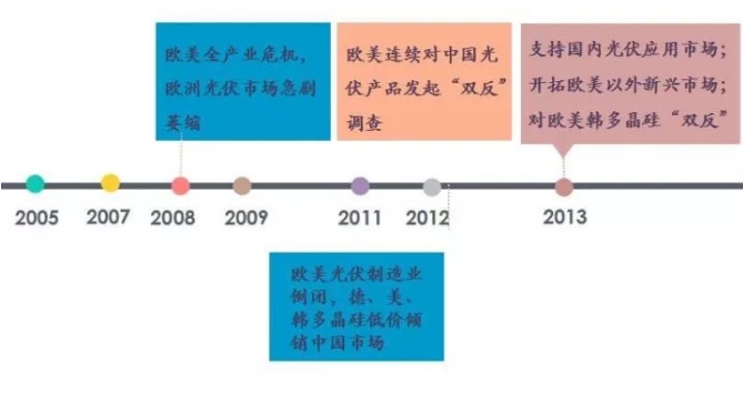 而另一方面,國際經(jīng)濟(jì)金融和貿(mào)易政策也深刻影響了行業(yè)走勢(shì),使整體市場(chǎng)格局顯現(xiàn)了較大變化。2008年時(shí),歐美全產(chǎn)業(yè)危機(jī)爆發(fā),歐洲光伏市場(chǎng)急劇萎縮,也就是那時(shí)中國多晶硅的售價(jià)全線潰退,每公斤上百美元的多晶硅跌破了30美元。歐美相關(guān)機(jī)構(gòu)也連續(xù)對(duì)中國光伏產(chǎn)品發(fā)起了“雙反”調(diào)查。直至2013年時(shí),支持中國光伏應(yīng)用市場(chǎng)的各項(xiàng)政策開啟,歐美以外新興市場(chǎng)成為企業(yè)出海首選、對(duì)歐美韓的中國多晶硅“雙反”等政策也賦予了行業(yè)新的生命力。