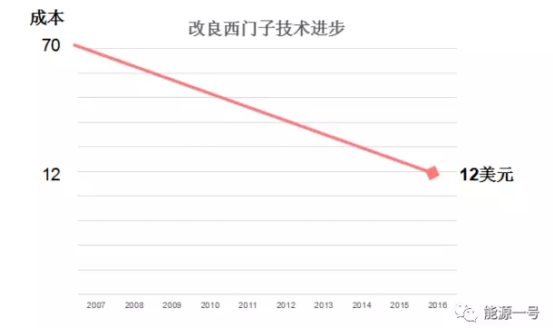 節(jié)能環(huán)保方面,多晶硅生產(chǎn)過程中的綜合電耗,由2007年的350千瓦時(shí)降至2016年的60千瓦時(shí);還原電耗也由180千瓦時(shí)降至42千瓦時(shí)左右。改良西門子法的多晶硅制造成本也從2007年的70美元/公斤跌至12美元/公斤,甚至10美元以下,下降幅度高達(dá)70%以上。