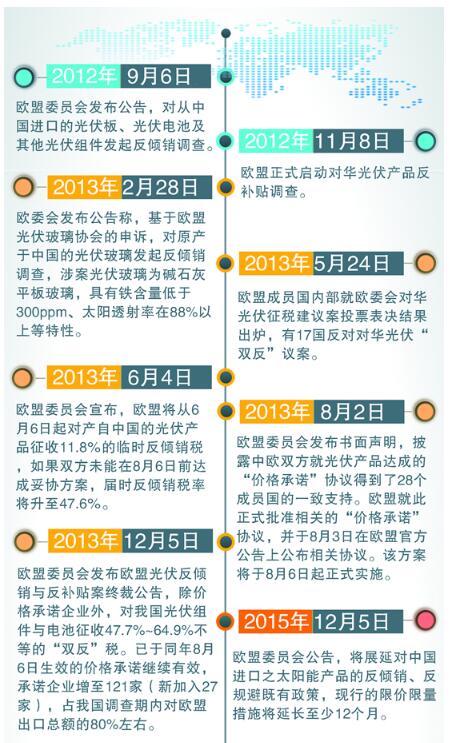 9月16日,歐盟委員會發(fā)布對華光伏反傾銷反補(bǔ)貼措施期中復(fù)審調(diào)查終裁公告,決定改變措施的形式,在措施剩余近一年的執(zhí)行期內(nèi),將原先的價(jià)格承諾方式替換為最低限價(jià)。