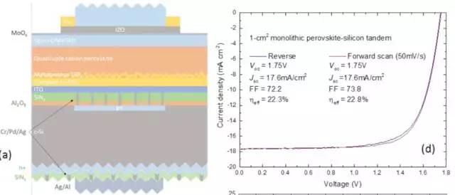 原標(biāo)題:前沿通報:鈣鈦礦/同質(zhì)結(jié)晶硅串聯(lián)疊層電池效率超22%