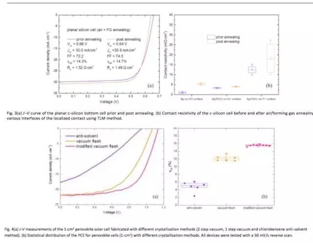 ANU的作者認(rèn)為,經(jīng)過優(yōu)化設(shè)計上下兩層和中間接觸層,提升的開壓和填充因子(78%)有望在實現(xiàn)29%的轉(zhuǎn)化效率。