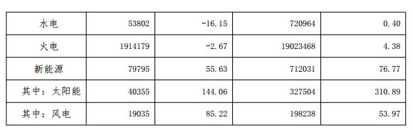 (一)發(fā)電量情況。9月份當(dāng)月,全省發(fā)電量204.78億千瓦時(shí),同比減少1.65%。其中水電5.38億千瓦時(shí),同比減少16.15%;火電191.42億千瓦時(shí),同比減少2.67%;新能源7.98億千瓦時(shí),同比增長(zhǎng)55.63%。