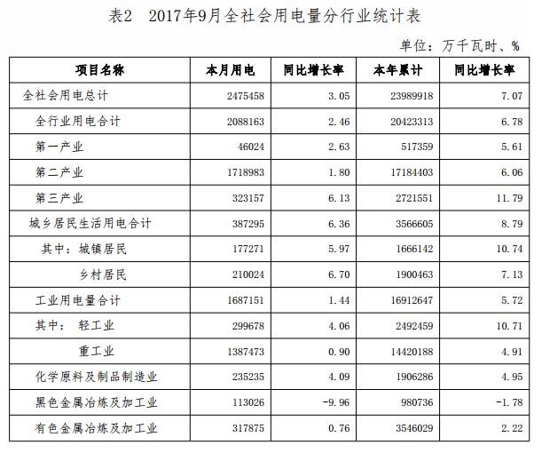 (一)全社會(huì)用電量情況。2017年9月,全省全社會(huì)用電量247.55億千瓦時(shí),同比增長(zhǎng)3.05%;累計(jì)用電量2398.99億千瓦時(shí),同比增長(zhǎng)7.07%。