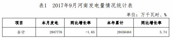 2017年9月河南省電力供需情況通報(bào)