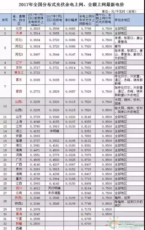 2017年下半年,我國各省市發(fā)改委相繼公布了本地的最新燃煤機(jī)組標(biāo)桿上網(wǎng)電價(jià)。隨之,我國各省市分布式光伏余量上網(wǎng)電價(jià)也有了新變化。