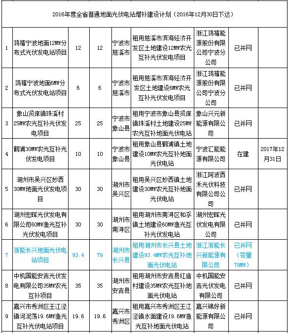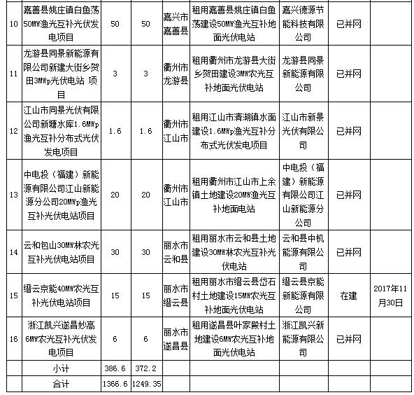 浙江省2016年普通地面光伏電站建設計劃調(diào)整和2017年度光伏指標分配方案