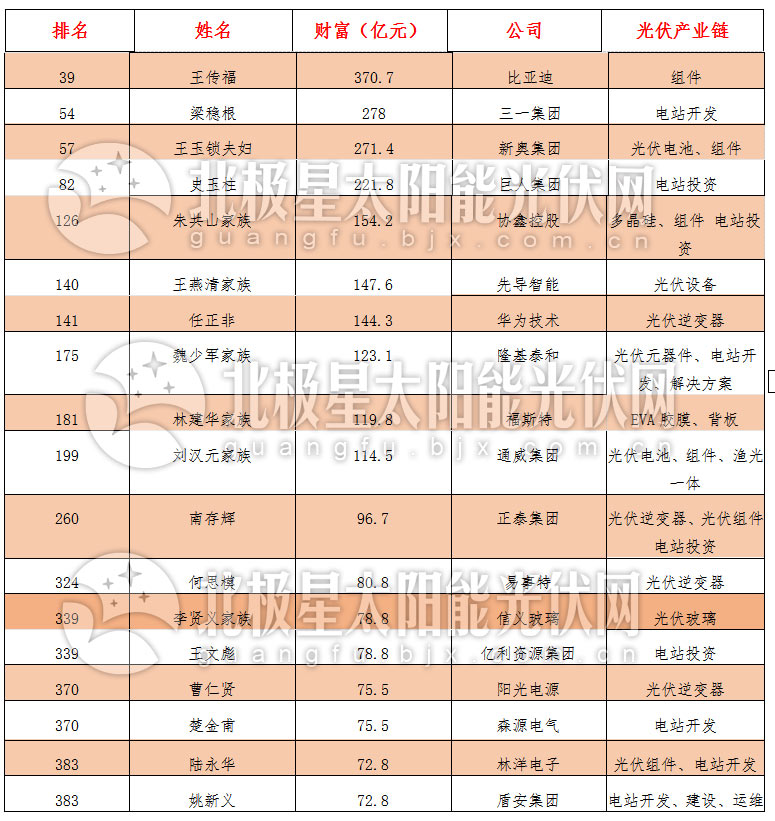 2017福布斯中國400富豪榜揭曉 光伏領(lǐng)域上榜18人!