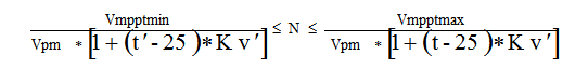 如果以極端最低溫-10℃、極端最高溫40℃、265W多晶組件、開(kāi)路電壓Voc=38.05V、工作電壓Vpm=31.02V以及開(kāi)路電壓溫度系數(shù)-0.31%為例,根據(jù)上述公式可以得出組串長(zhǎng)度范圍為:18-23塊/串。在此設(shè)計(jì)時(shí),建議盡量提高單組串的串聯(lián)數(shù)量,越接近允許范圍的上限(23塊)越好,這樣不僅可以獲得更高的發(fā)電量,還可以降低直流線(xiàn)纜成本和減少線(xiàn)損。