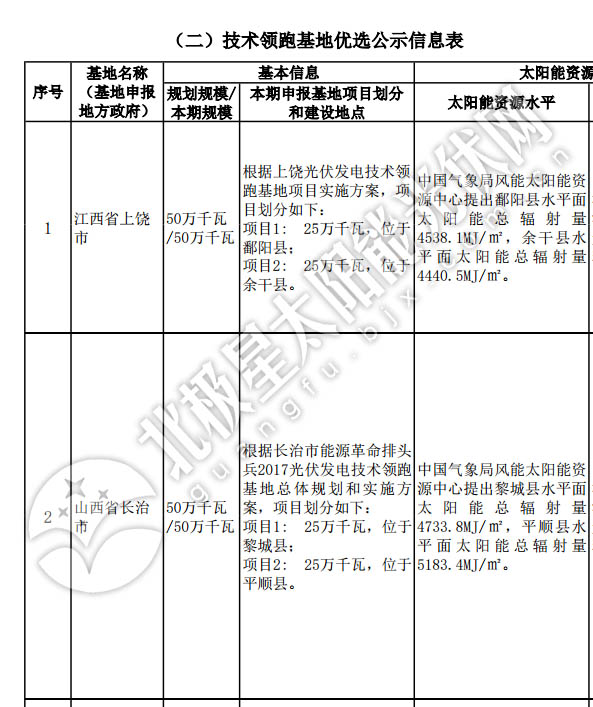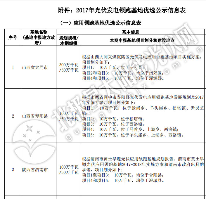 重磅:國家能源局公示2017年光伏領(lǐng)跑基地優(yōu)選結(jié)果