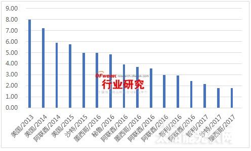 本文根據(jù)OFweek行業(yè)研究中心即將推出的《2017年太陽能光伏行業(yè)年度報告》相關(guān)資料整理。墨西哥能源部2 3吉瓦 5 5TWh(55億度, 2020年并網(wǎng))光伏采購競標(biāo)結(jié)果近日出爐:意大利ENEL綠色電力公司報價1 77美分 千瓦時