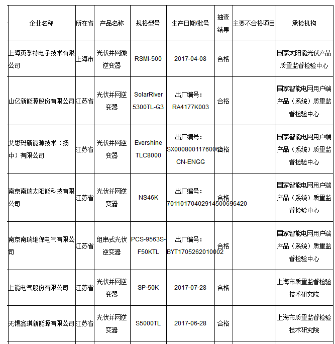 本次共抽查了上海、江蘇、浙江、安徽、廣東等5個省、直轄市27家企業(yè)生產(chǎn)的27批次光伏并網(wǎng)逆變器產(chǎn)品。