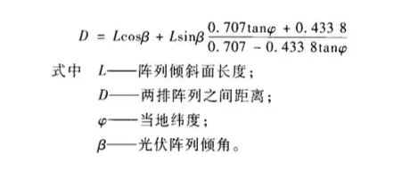 冬季影子較長(檢驗組件間距設(shè)計是否合理的最佳時機),在設(shè)計光伏電站時,最好保證在冬至日影子最長的時候,9點到下午3點,前排的光伏組件不會對后排形成遮擋。相關(guān)的計算公式如下: