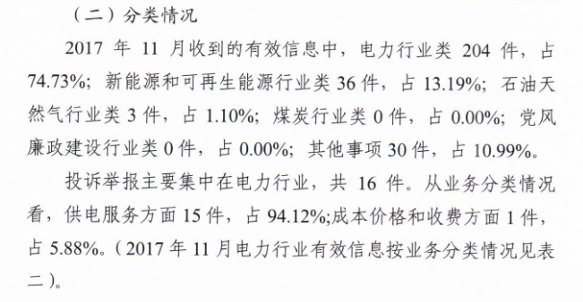 四川能源監(jiān)管辦2017年11月12398熱線投訴舉報(bào)情況通報(bào)