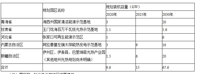(一)光熱發(fā)電產(chǎn)業(yè)規(guī)劃情況