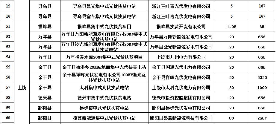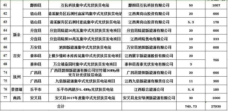 江西省2017年740.73MW集中式光伏扶貧電站申報(bào)情況