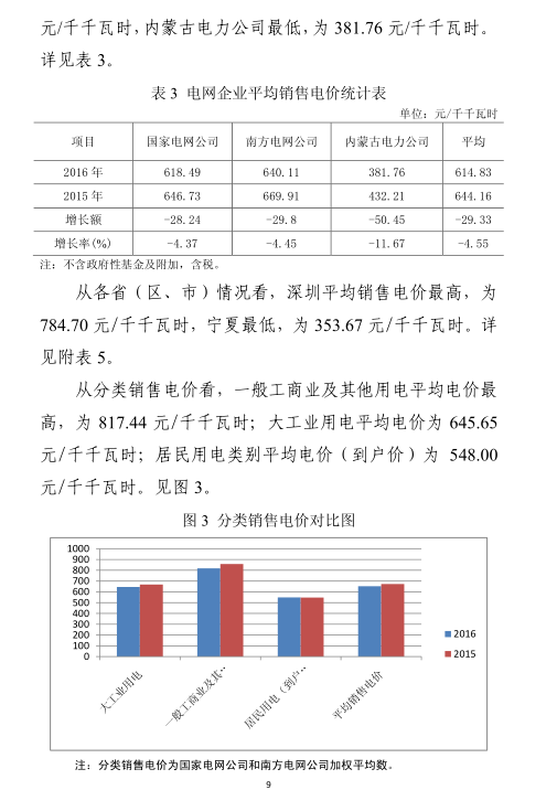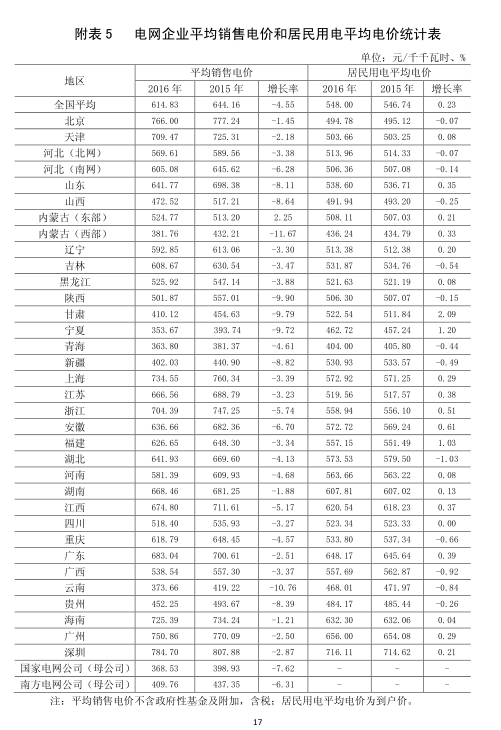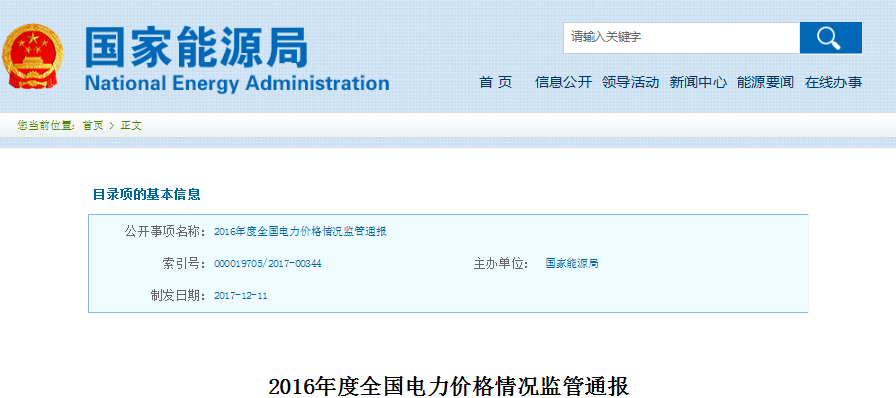 國家能源局:2016年全國電力價格情況監(jiān)管通報 光伏平均上網(wǎng)電價同比下降0.93%