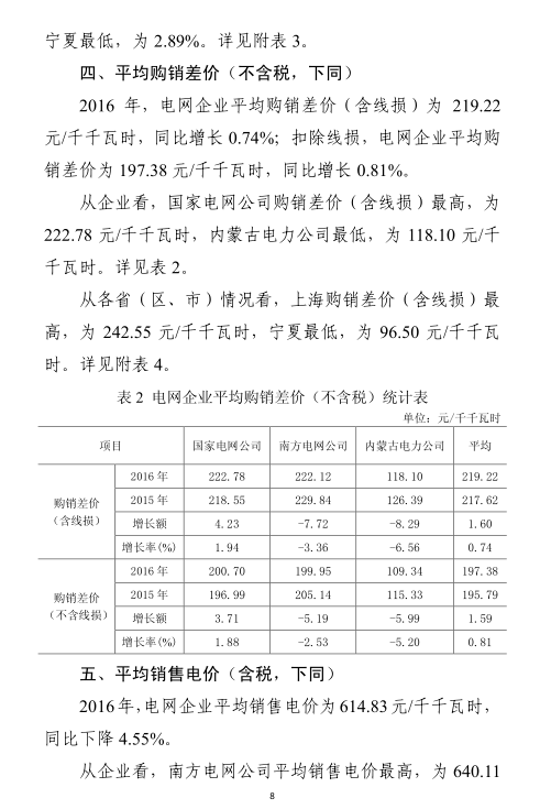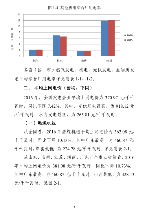 國家能源局日前發(fā)布了對全國主要電力企業(yè)2016年度價格情況的綜合廠用電率、平均上網(wǎng)電價等六個方面的統(tǒng)計分析結(jié)果:從全國來看,光伏方面:2016年發(fā)電平均綜合廠用電率為1 62%,同比下降0 02個百分點;2016年,全