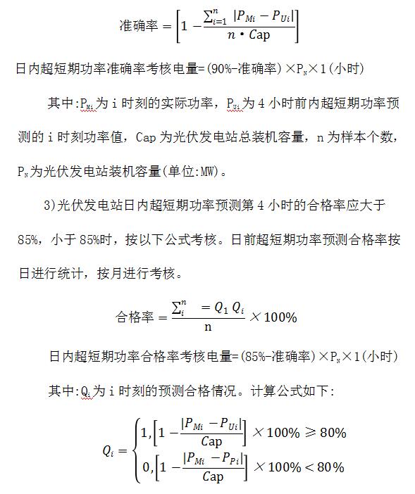 2)光伏發(fā)電站日前短期功率預(yù)測(cè)準(zhǔn)確率應(yīng)大于等于85%,小于85%時(shí),按以下公式考核。日前短期功率預(yù)測(cè)準(zhǔn)確率按日進(jìn)行統(tǒng)計(jì),按月進(jìn)行考核。