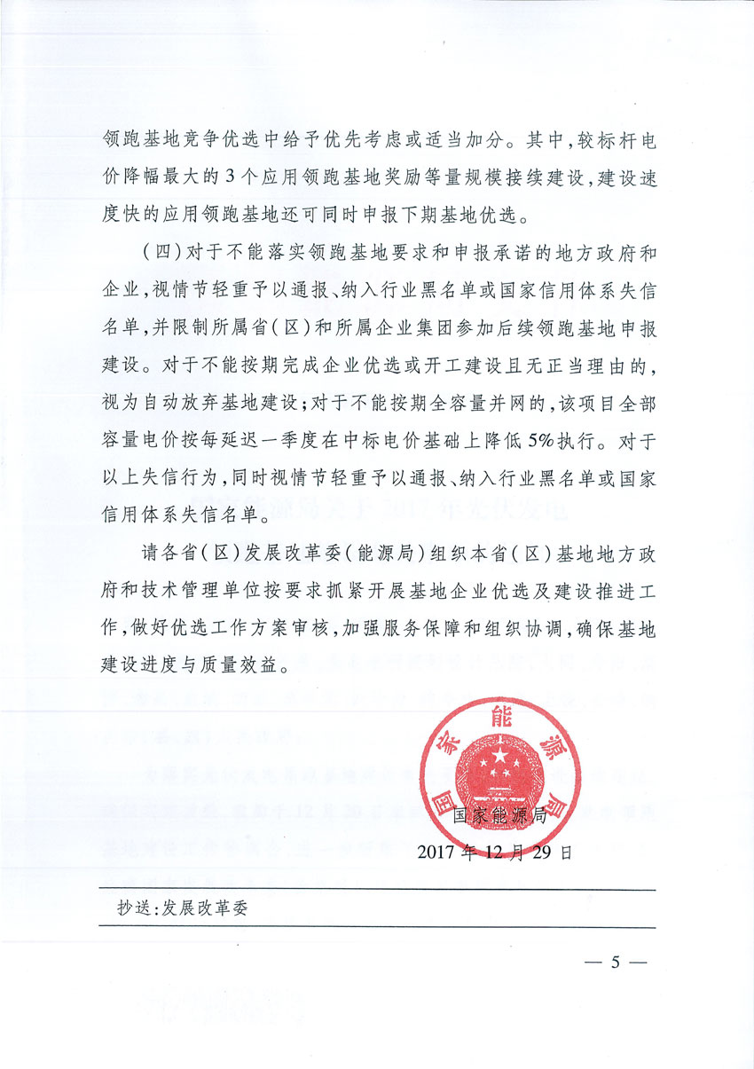 國(guó)家能源局關(guān)于2017年光伏發(fā)電領(lǐng)跑基地建設(shè)有關(guān)事項(xiàng)的通知