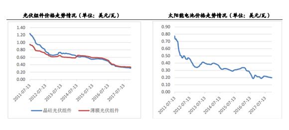 整體來看,光伏組件價格2018年仍大概率繼續(xù)下行。近年來光伏組件的價格一直都在降低,目前組件維持單晶緩跌、多晶暫時持穩(wěn)的局面,由于中國部分多晶硅廠商仍處于停產(chǎn)檢修并恢復(fù)產(chǎn)能的階段,短期內(nèi)的供應(yīng)短缺延遲了產(chǎn)品價格下跌。