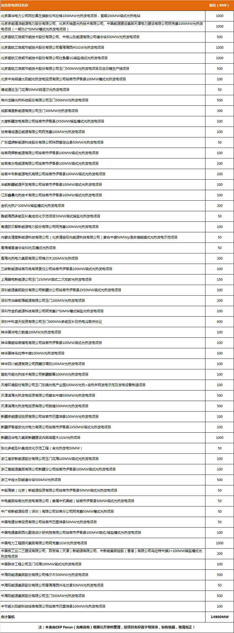 以下為CSP Focus梳理匯總的相關光熱發(fā)電項目情況: