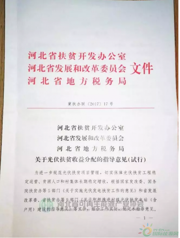 河北省發(fā)布光伏扶貧收益分配指導意見:每1萬千瓦扶貧電站帶動1000個卡貧困戶