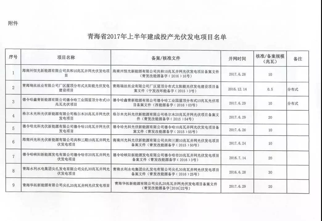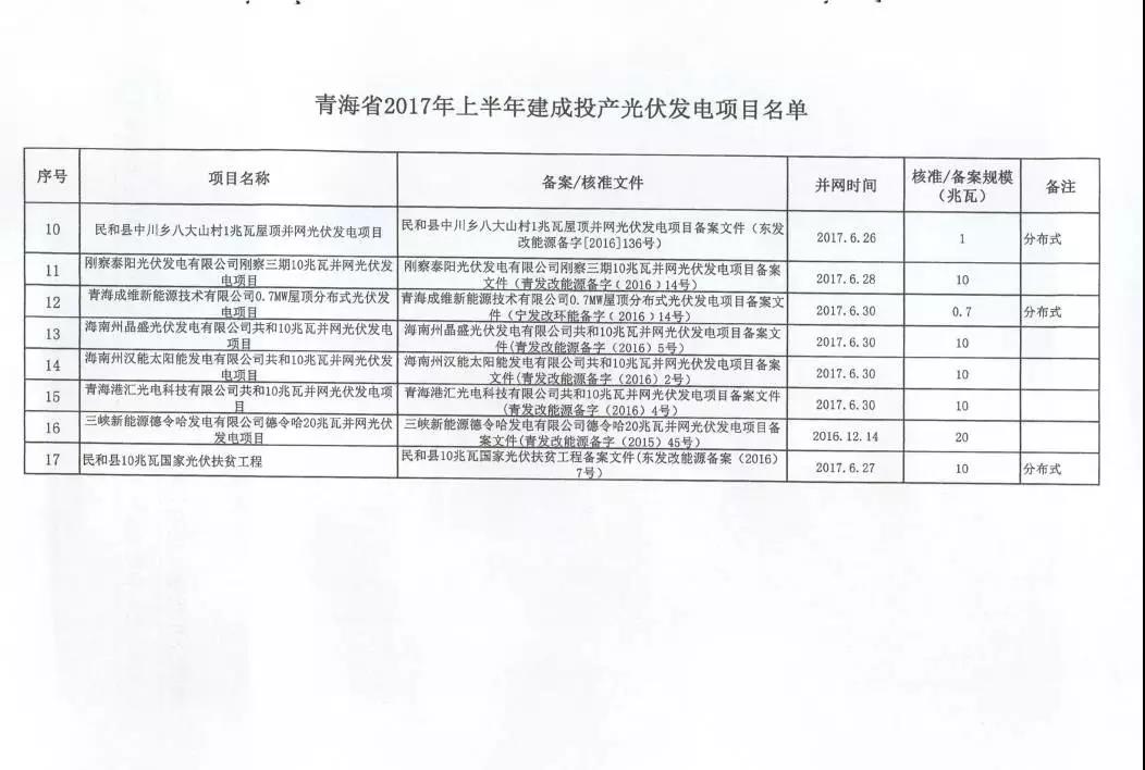 日前,青海省發(fā)改委發(fā)布《關(guān)于公布青海省2017年上半年建成投產(chǎn)光伏發(fā)電項(xiàng)目上網(wǎng)電價(jià)的通知》。2017年上半年,青海省共有17個(gè)光伏項(xiàng)目建成投