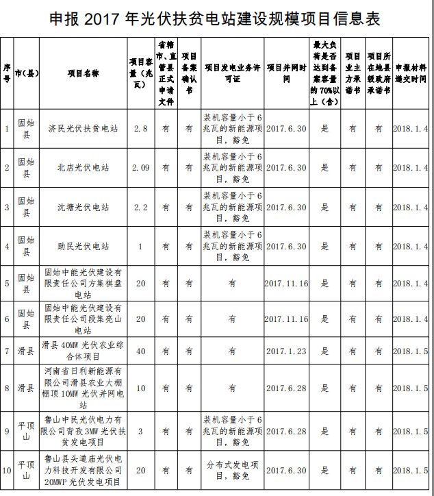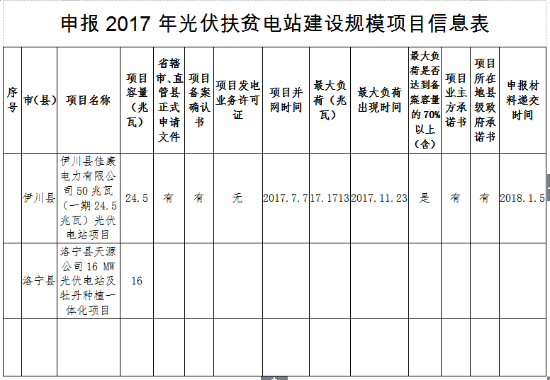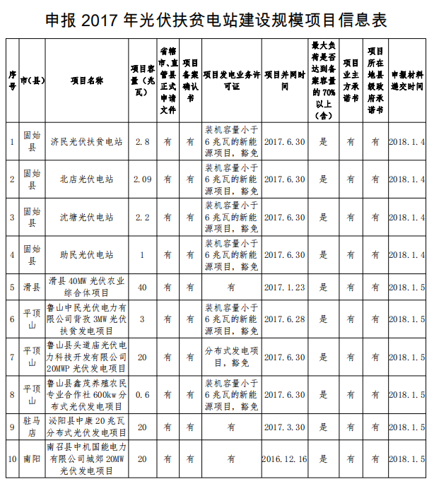 河南關于申報2017年光伏扶貧電站建設規(guī)模項目的公示