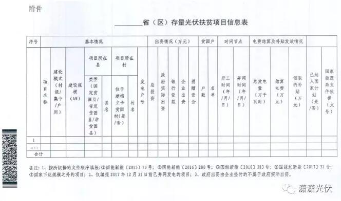 國家能源局、國務院扶貧辦共同發(fā)文,請相關省區(qū)盡快梳理并上報存量光伏扶貧項目的詳細信息。一、統(tǒng)計范圍1、國家能源局正式發(fā)文認可的光伏