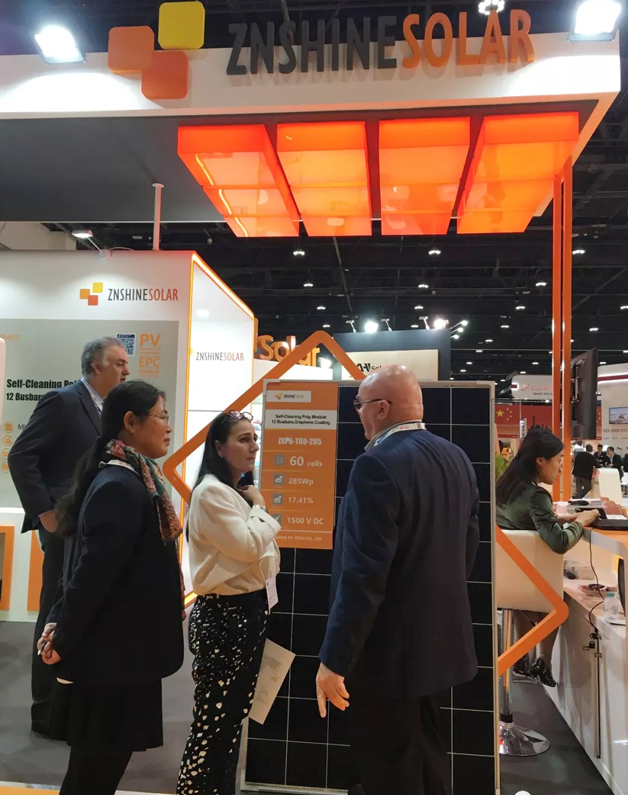 正信攜12柵自清潔組件亮相阿布扎比展助力海灣地區(qū)新能源發(fā)展