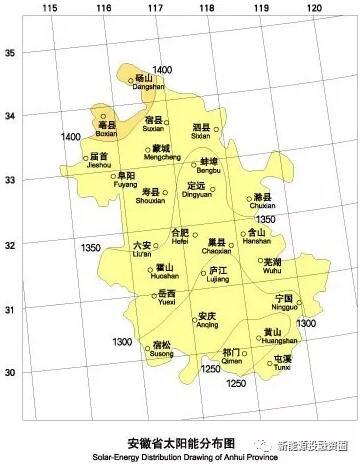 安徽省太陽能資源從地域分布來看,從東南向西北逐漸增加。各市的太陽能資源概況見下表。