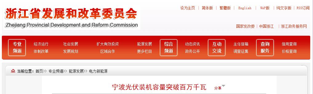 原標(biāo)題:寧波光伏裝機(jī)容量突破百萬千瓦