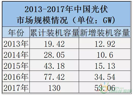 2013-2017年中國光伏市場規(guī)模對比