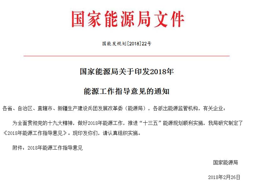 3月7日,國家能源局下發(fā)關(guān)于印發(fā)2018能源工作指導(dǎo)意見的通知。
