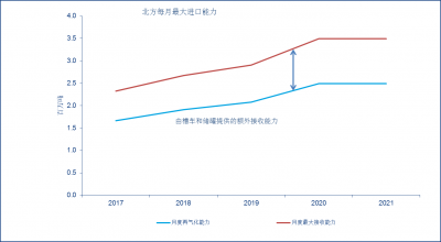 最重要的是,液化天然氣的進(jìn)口量會受到接收站能力的限制。在過去的兩個冬季我們已經(jīng)看到北方一些接收站超負(fù)荷運行,北方冬季液化天然氣進(jìn)口能力已經(jīng)受到了接收站能力的制約。