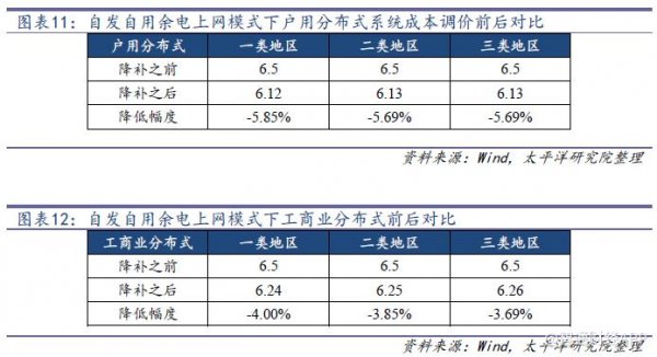 假設(shè)調(diào)價(jià)之后,電站依然要保持其原有的收益率水平,那么系統(tǒng)成本需要相應(yīng)的降低11.33%-15.00%左右,這和降價(jià)幅度11.76%-15.38%基本相匹配。也就是說(shuō)對(duì)于地面電站來(lái)說(shuō),10%的系統(tǒng)成本下降方可抵御10%的電價(jià)下調(diào)幅度。