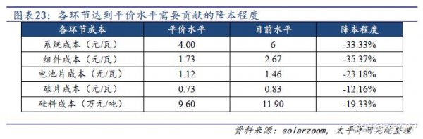 平價(jià)上網(wǎng)時(shí)各制造環(huán)節(jié)成本測(cè)算