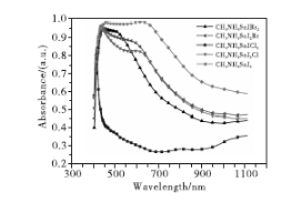 圖5 不同成分鈣鈦礦薄膜的紫外可見光吸收率曲線圖