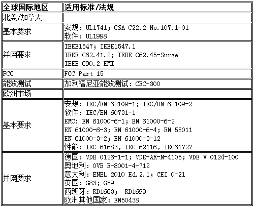 (1)認證標準,包括安規(guī),性能,和并網(wǎng)要求。