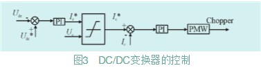 雙向DC/DC變換器實(shí)現(xiàn)直流低壓側(cè)超級(jí)電容器組與直流高壓側(cè)之間的能量轉(zhuǎn)換。DC/DC變換器的控制目標(biāo)不能簡(jiǎn)單設(shè)定為維持儲(chǔ)能電容器直流高壓側(cè)電壓恒定,同時(shí)還須滿足超級(jí)電容器的功率限制,其控制框圖如圖3所示。