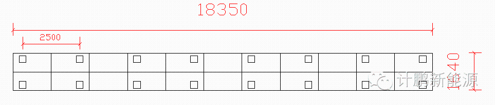 屋頂分布式光伏基礎(chǔ)根據(jù)屋頂形式的不同,主要分為夾具固定式基礎(chǔ)和配重塊基礎(chǔ)兩種,下面小編就以北京市某商業(yè)樓混凝土上人屋面為例,對(duì)屋頂分布式光伏混凝土配重塊基礎(chǔ)進(jìn)行初步設(shè)計(jì)。本商業(yè)樓屋面高度20m,混凝土屋面太陽能方陣采用主次梁布置,電池板以35°傾角布置;主次梁及柱采用表面熱鍍鋅鋼型材。本計(jì)算依據(jù)2×11(電池板)陣列進(jìn)行計(jì)算,計(jì)算簡圖如下圖。