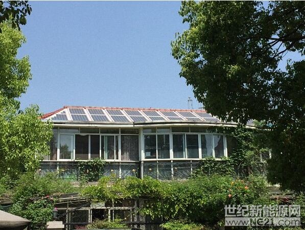 趙春江家屋頂?shù)哪蟼?cè)安裝了40平方米的太陽能電池板