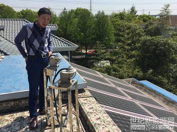 登上趙春江家三樓屋頂,記者看到,除了朝南一側(cè)的屋頂已全部被單晶硅太陽能板覆蓋外,屋頂中央平臺上還安裝了兩只銀灰色的輻射儀。