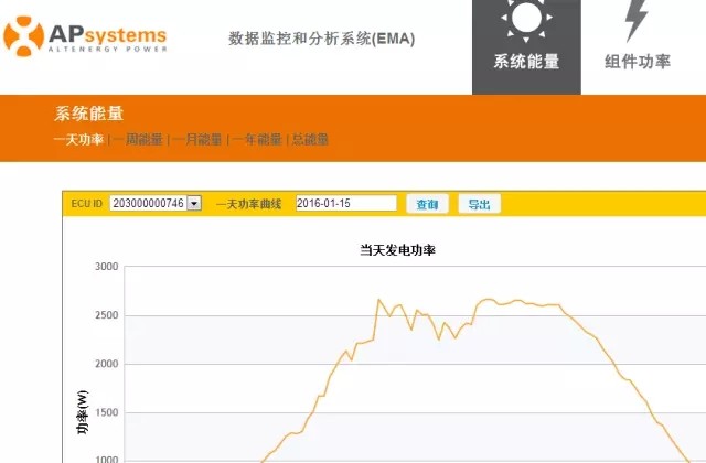 運(yùn)維管理:光伏電站的運(yùn)維對于電站的發(fā)電量、壽命等有著很大的影響。貧困地區(qū)的屋頂分散、屋面條件差、缺少具有專業(yè)知識的人員等因素是構(gòu)成運(yùn)維的最大難點(diǎn)。整村的光伏系統(tǒng)需要有專項(xiàng)的運(yùn)維資金和運(yùn)維人員,進(jìn)行日常監(jiān)控和定期清洗。而偏遠(yuǎn)貧困地區(qū)的系統(tǒng)監(jiān)控又給運(yùn)維增加了難度。因此節(jié)約運(yùn)維成本、引入智能化運(yùn)維體系將是必然之選。微逆變器系統(tǒng)配置的能量控制器(ECU)可以實(shí)時監(jiān)測每塊組件及逆變器輸出的電能及功率,并以圖形化方式在計(jì)算機(jī),手機(jī)等顯示設(shè)備中形象展示系統(tǒng)的工作狀況。當(dāng)任意部件出現(xiàn)故障時,系統(tǒng)可以給出精確的故障部位及原因判定,同時自動切斷故障部件,方便系統(tǒng)的運(yùn)維管理。