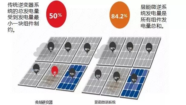 發(fā)電收益保障:根據(jù)621號文件,目標(biāo)是使農(nóng)戶有每年大于3000元以上的收入。那么如何保障這每戶的3000元呢?以全額上網(wǎng)模式分析,收益來源主要分為兩塊:政府補(bǔ)貼+上網(wǎng)賣電。無論是政府補(bǔ)貼還是上網(wǎng)賣電的收益都和系統(tǒng)的發(fā)電量息息相關(guān)。那么保障系統(tǒng)發(fā)電量,使得光伏扶貧工程中不再出現(xiàn)之前金太陽項(xiàng)目中劣質(zhì)電站成了必須要重視的問題。對于采用微型逆變器的系統(tǒng)來說,每臺逆變器對都具有獨(dú)立的MPPT功能,將每塊光伏組件的輸出優(yōu)化在最大功率點(diǎn)附近。另外,微逆系統(tǒng)由于沒有‘短板’效應(yīng),對太陽能組件匹配沒有要求,反而可以最大限度利用每塊組件的輸出,具有優(yōu)良的抗陰影效應(yīng);加之啟動電壓低等特點(diǎn),單日發(fā)電時間長,在陰雨天也能夠少量發(fā)電。微逆系統(tǒng)的多發(fā)電優(yōu)勢是光伏業(yè)主收益的保障。