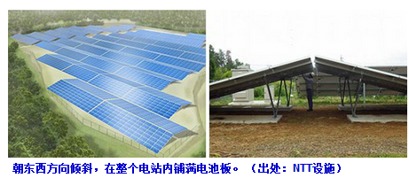日本NTT設施6月29日面向地上設置型光伏電站,發(fā)布了太陽能電池板設置的新方法:不是以往的朝南,而是向東西方向傾斜。