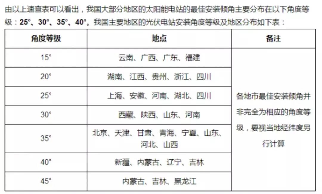 (2)、速查表已根據(jù)當?shù)亟?jīng)緯度換算出組件的最佳安裝傾角;