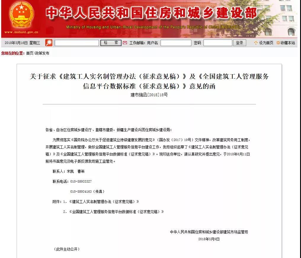 日前,住建部組織起草了《建筑工人實(shí)名制管理辦法(征求意見(jiàn)稿)》及《全國(guó)建筑工人管理服務(wù)信息平臺(tái)數(shù)據(jù)標(biāo)準(zhǔn)(征求意見(jiàn)稿)》,公開(kāi)向社會(huì)征求意見(jiàn)。這意味著,按照《建筑工人實(shí)名制管理辦法(征求意見(jiàn)稿)》要求,進(jìn)入施工現(xiàn)場(chǎng)從事建筑作業(yè)的建筑工人,不僅應(yīng)該經(jīng)過(guò)基本安全培訓(xùn),還要在全國(guó)建筑工人管理服務(wù)信息平臺(tái)上登記。建筑工人管理服務(wù)信息平臺(tái)系統(tǒng)由全國(guó)平臺(tái)、各省市縣平臺(tái)、建筑企業(yè)的實(shí)名制管理信息系統(tǒng)和建筑工人個(gè)人客戶(hù)端等組成,平臺(tái)將記錄建筑工人的學(xué)歷記錄、獎(jiǎng)勵(lì)處罰信息、工資情況甚至是培訓(xùn)記錄。