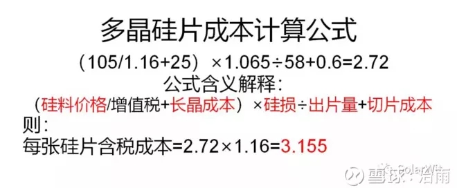 我這邊掌握比較準(zhǔn)確的多晶硅片成本計(jì)算公式,當(dāng)前大家對(duì)硅料價(jià)格有下跌預(yù)期,擔(dān)心硅料價(jià)格下跌后手中的多晶硅片會(huì)成為燙手山芋;在此我想說的是:當(dāng)前多晶硅片的價(jià)格已經(jīng)包含了充分的硅料價(jià)格下跌的預(yù)期,即便硅料價(jià)格快速跌至100元/kg的位置,硅片價(jià)格依然能在3.15元的位置尋找到強(qiáng)有力的支撐。