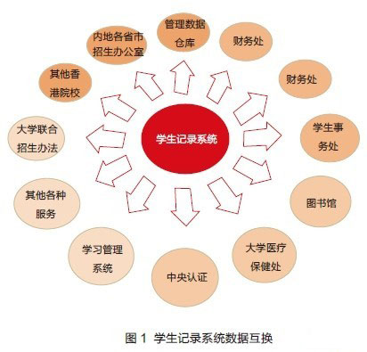 另外, 新系統(tǒng)需與20 多個(gè)校內(nèi)外不同部門組織有數(shù)據(jù)互換 ( 見圖1)。其中包括與香港新的大學(xué)聯(lián)合招生系統(tǒng)的緊密接口。香港大學(xué)聯(lián)合招生辦法是協(xié)助持有香港中學(xué)文憑成績(jī)的學(xué)生,申請(qǐng)修讀由八所參與大學(xué)聯(lián)招辦法的院校所提供的課程的主要途徑。